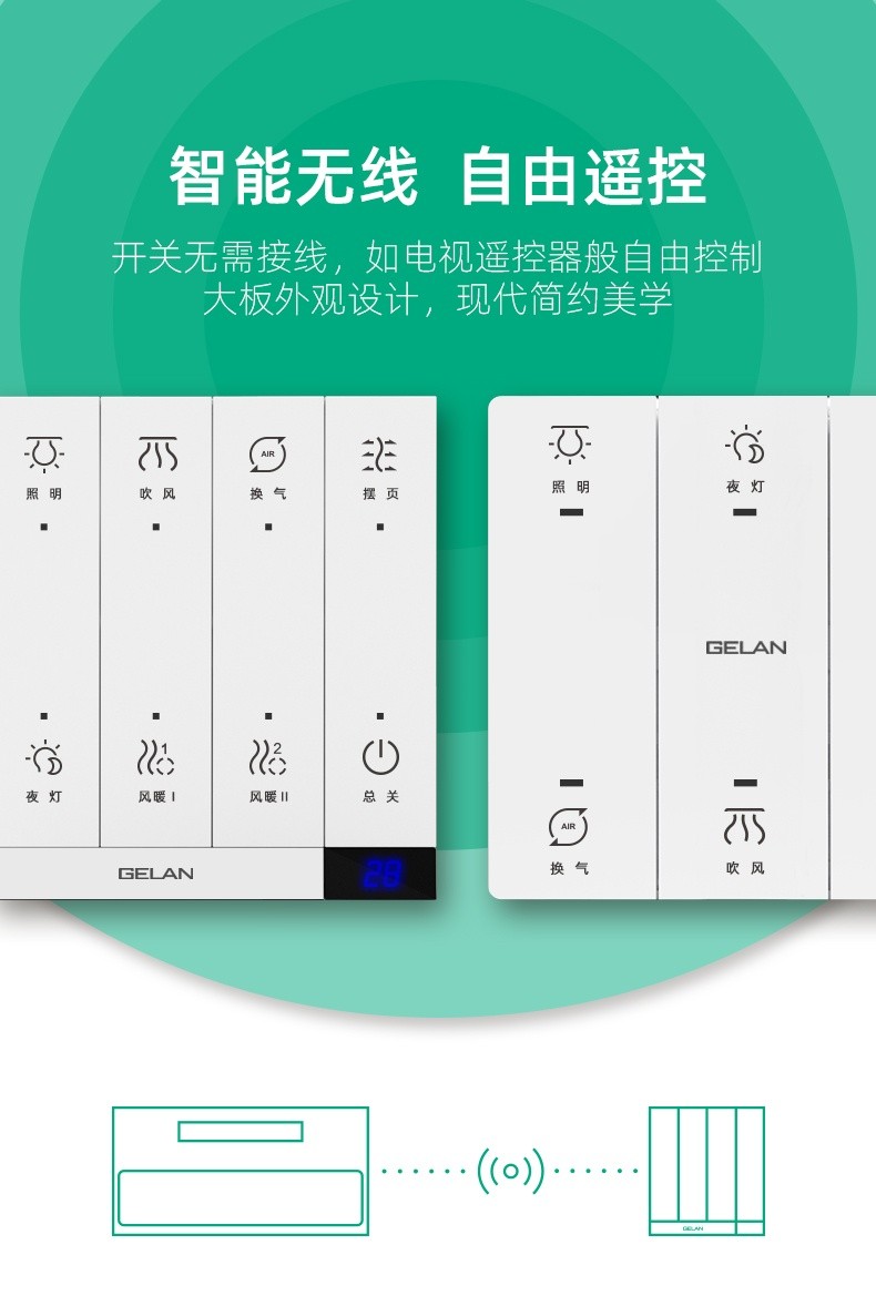 每天你都在與時間賽跑,爭分奪秒,每個寒冬你都在為洗澡而頭皮發麻,瑟瑟發抖!直到遇見了GELAN格蘭電氣,你會發現每天都如此的美好!GELAN格蘭智暖浴霸給您一個完美的沐浴享受。